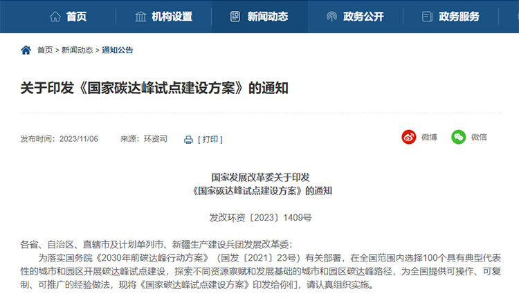近日,國家發(fā)展改革委近日印發(fā)《國家碳達峰試點建設方案》(以下簡稱“方案”), 將在全國范圍內選擇100個具有典型代表性的.....